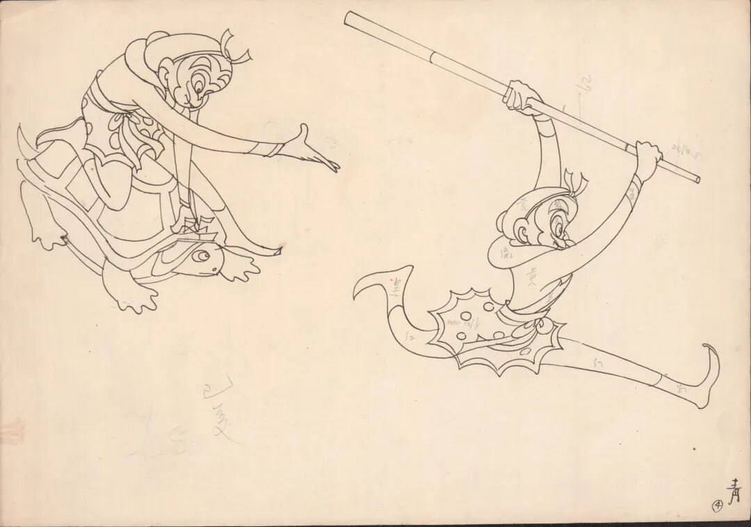 他指导的《小蝌蚪找妈妈》是世界上第一部水墨动画,本次展览便展出了由JC动漫馆珍藏的该片前期水墨美术手稿。