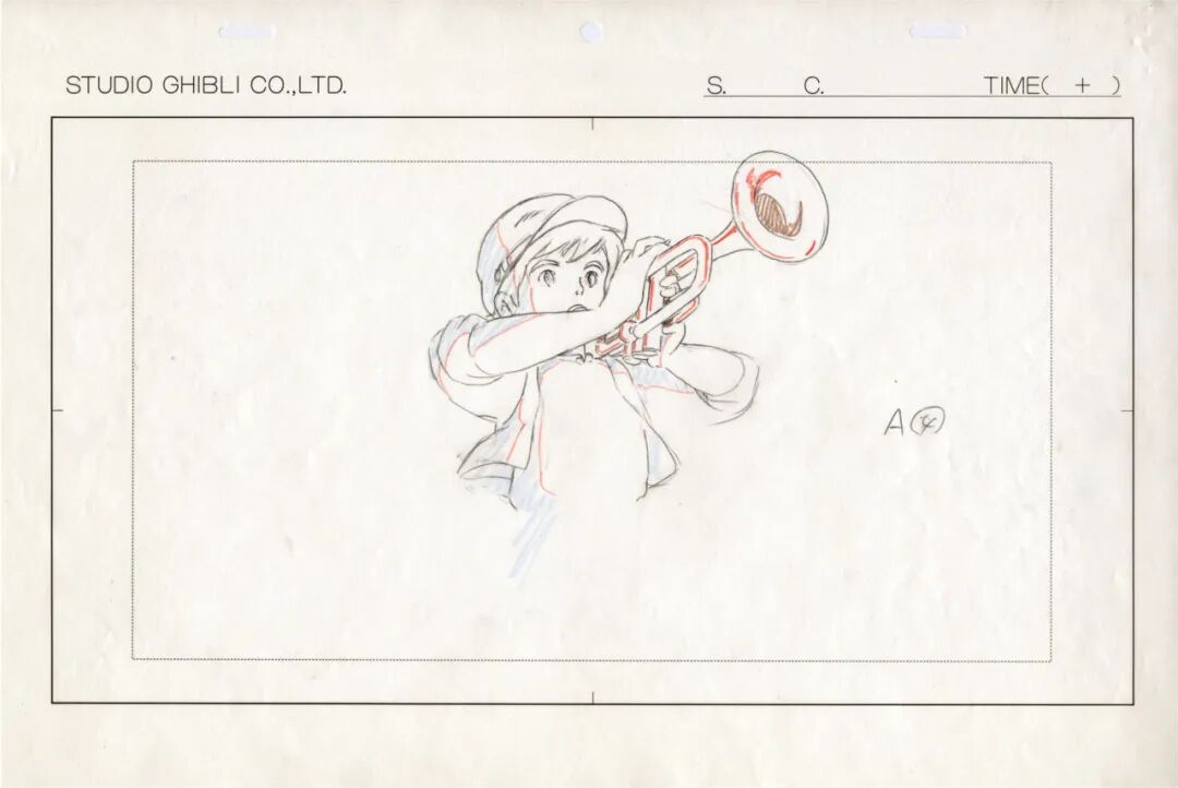 本次展览,秋叶原的观众更是亲眼看到了宫崎骏亲笔监修的《天空之城》原画,是JC动漫馆最具吸引力的日本动画藏品之一,画面呈现了男主角巴鲁吹响小号的经典瞬间。