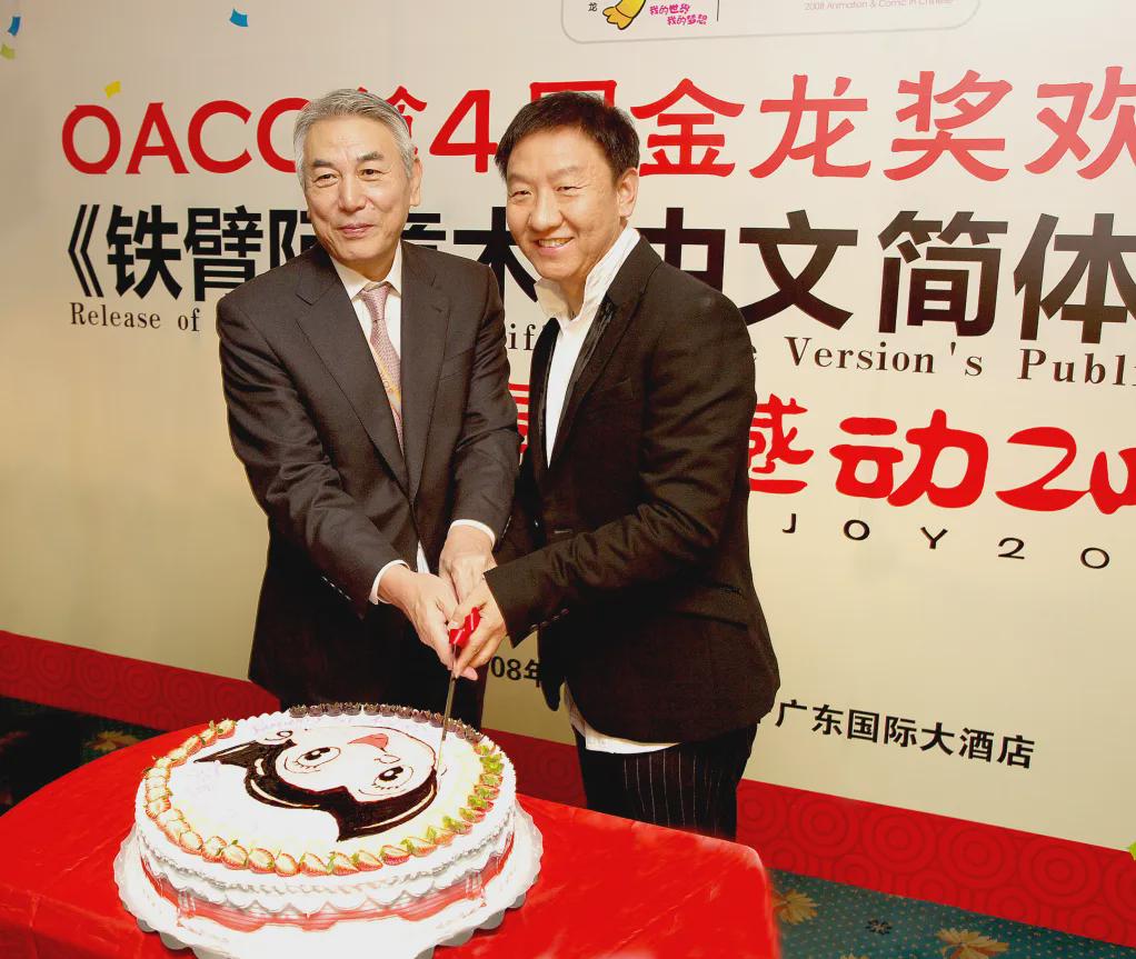 金城是简体中文版《铁臂阿童木》的出版人,这次让两位中日动漫英雄以年轻人喜欢的方式“合体击掌”,现场,他将画作原稿赠予日本株式会社手冢制作公司董事长松谷孝征。