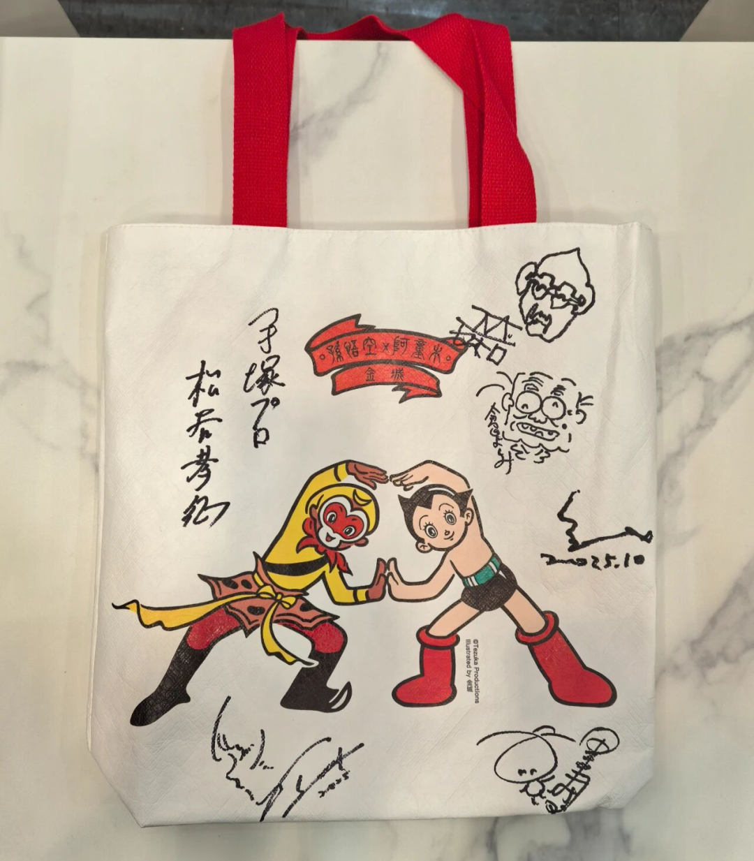 中日动漫情谊在秋日的东京不断升温,秋叶原的观众们被中日动漫经典与当代潮玩吸引着,活动现场的中日艺术家们则不约而同在印有展览主视觉的伴手袋上留下亲笔签绘。