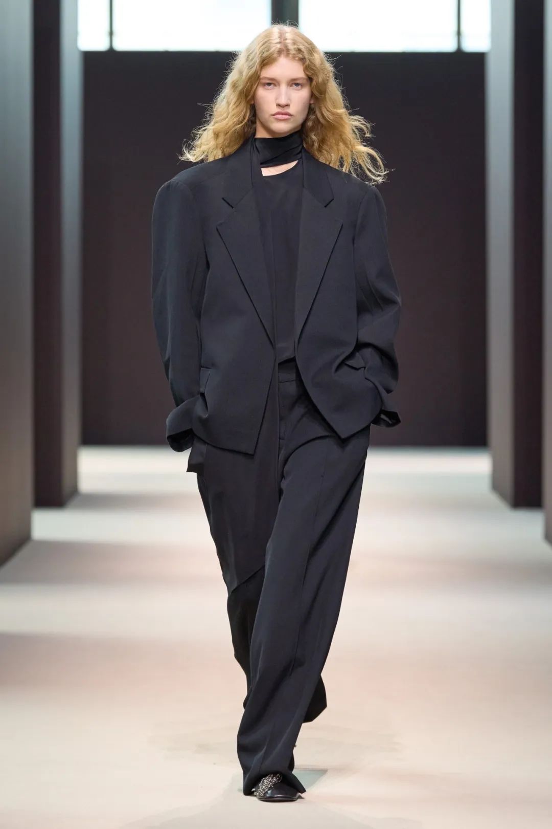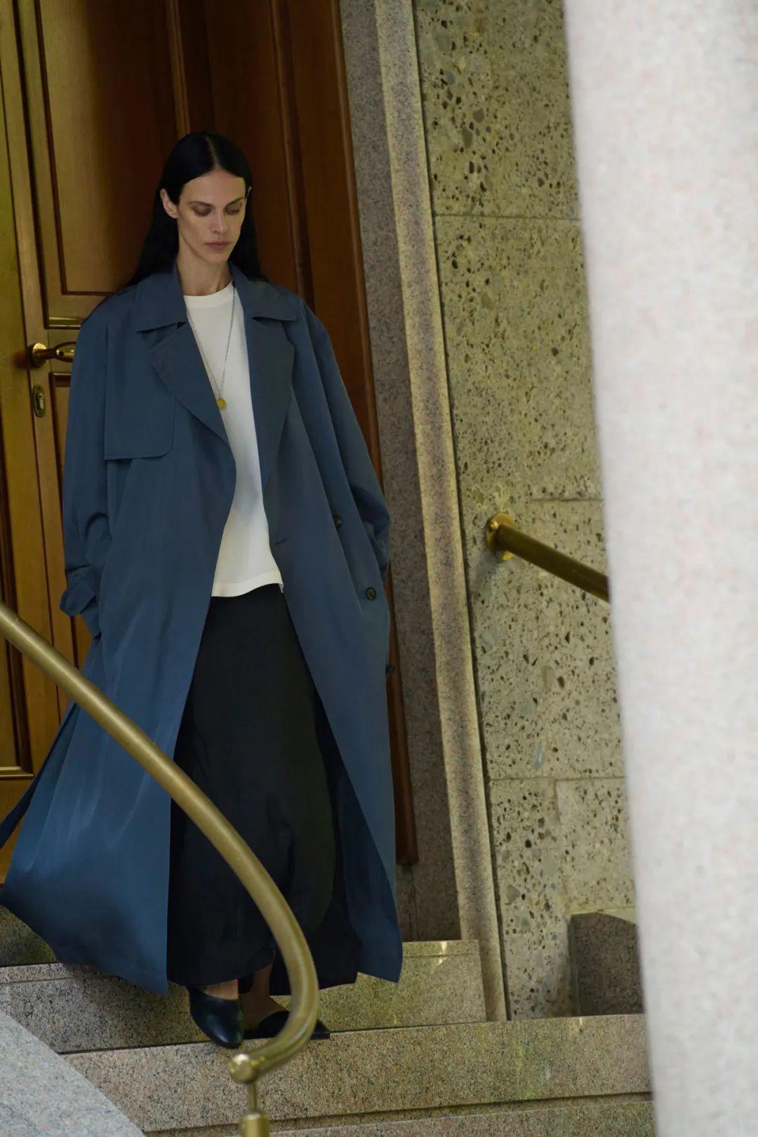 Brioni的淡人感穿搭并不是一味的克制,而是融合了女性对于慵懒松弛的追求,所以在大极简版型的基础上,又有一些飘逸流畅的流动感。