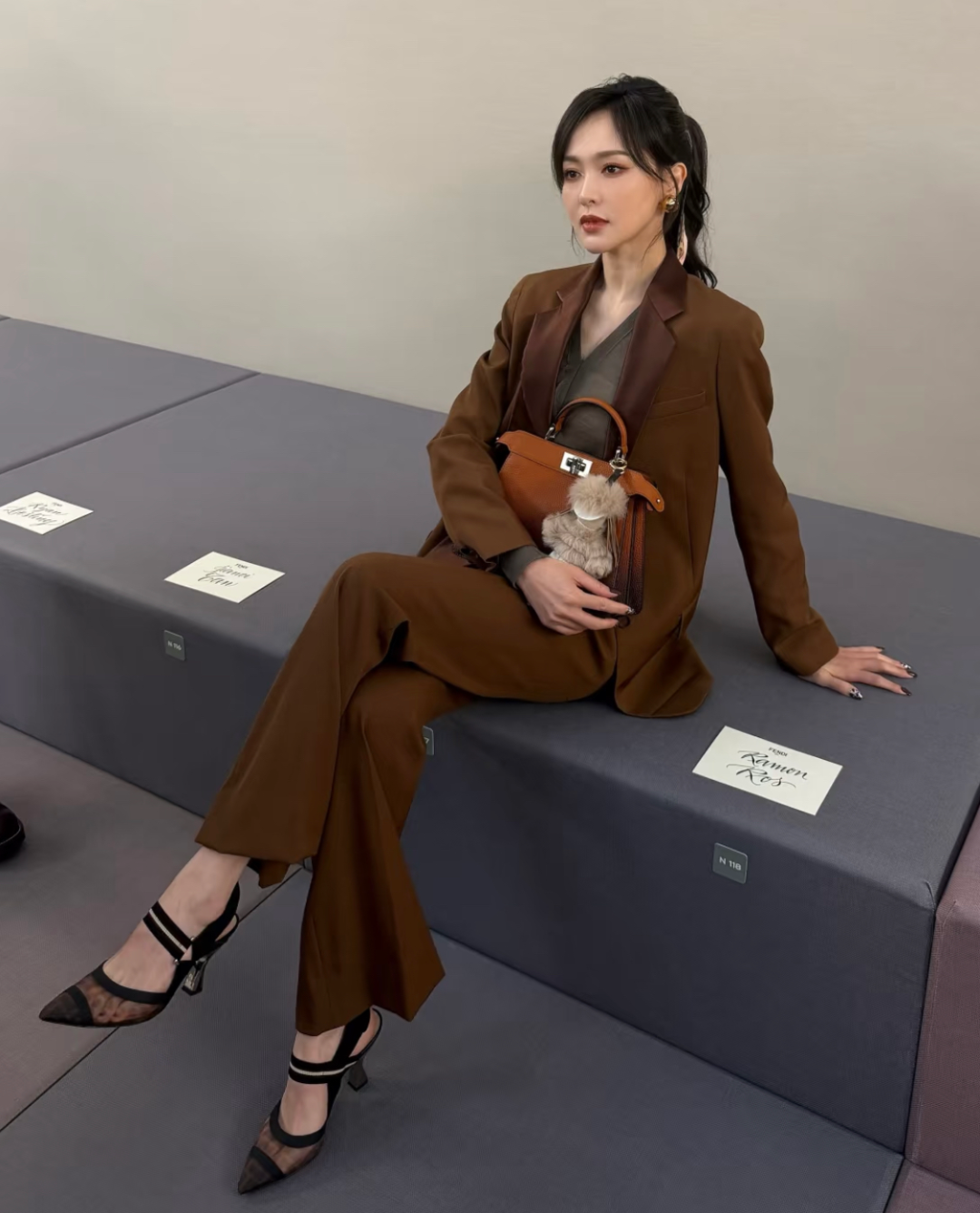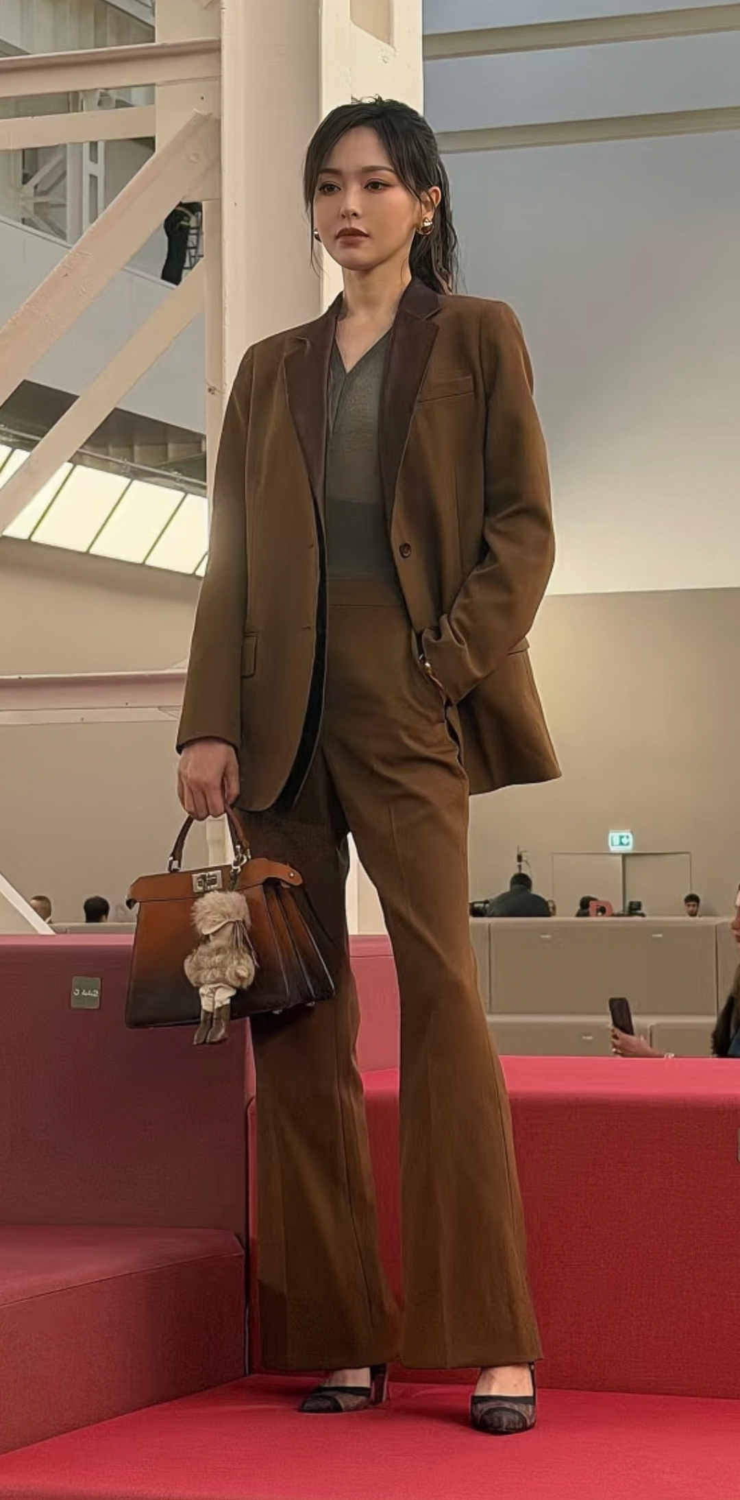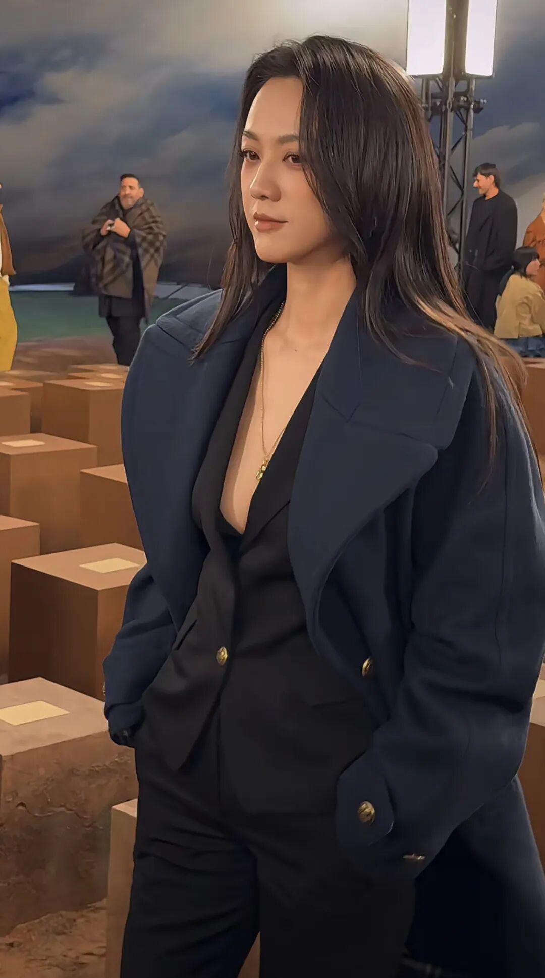 汤唯,不需要说了,氛围感的神,随便一拍都有故事感。Burberry真空西装配大衣,凌厉、干练、时髦、强大。