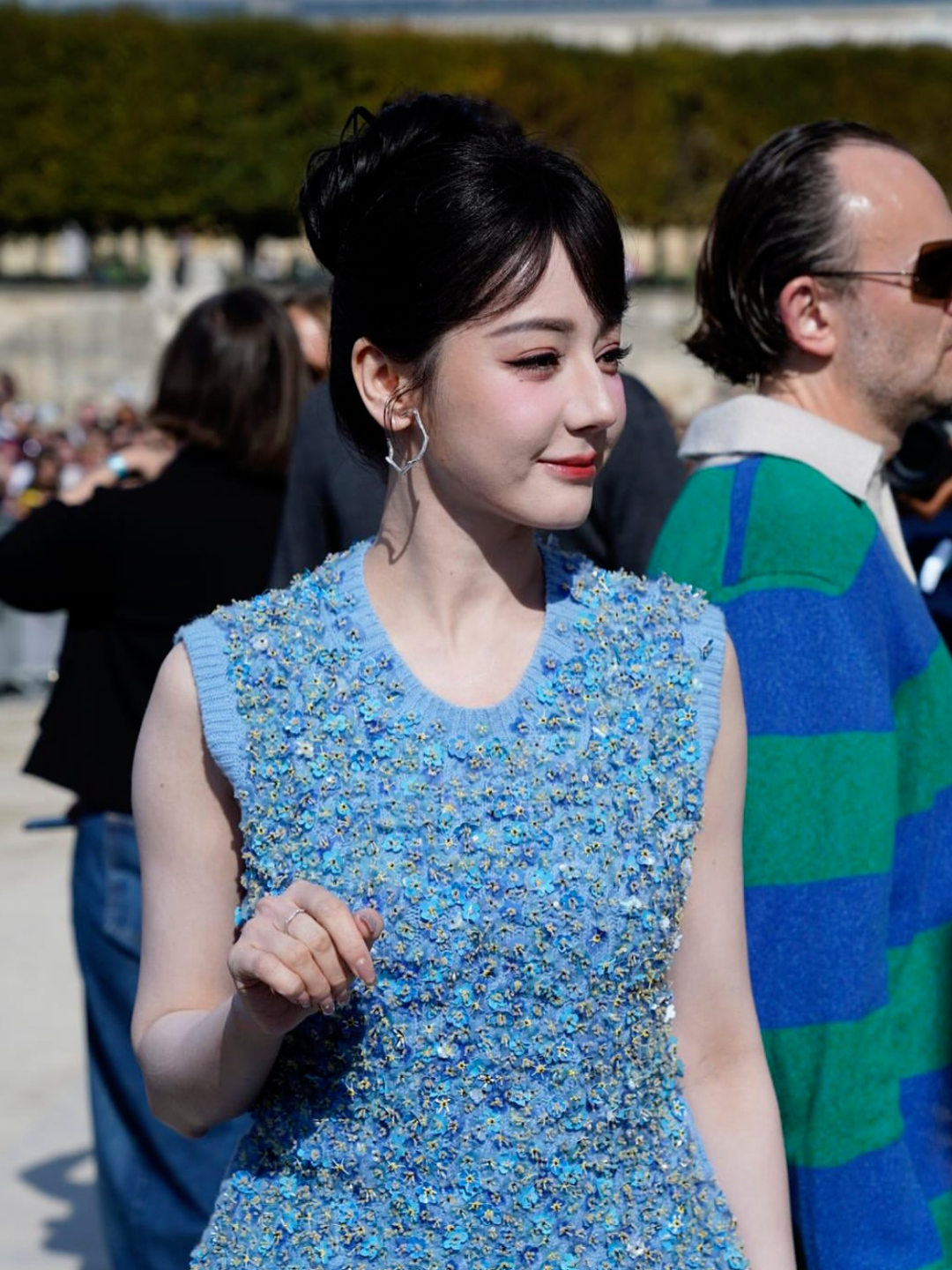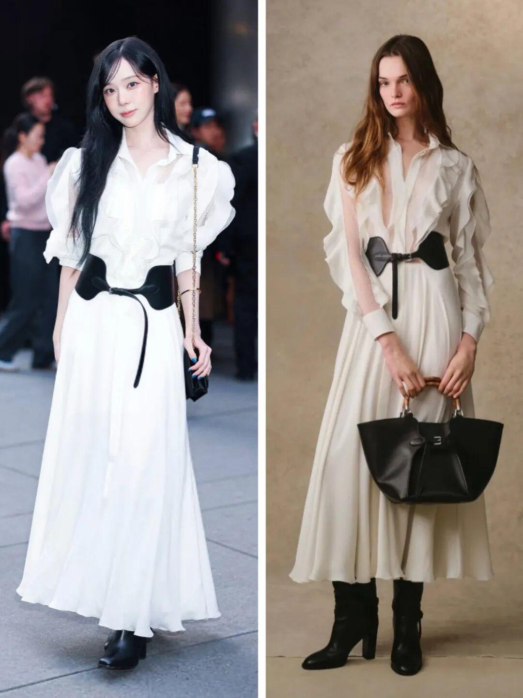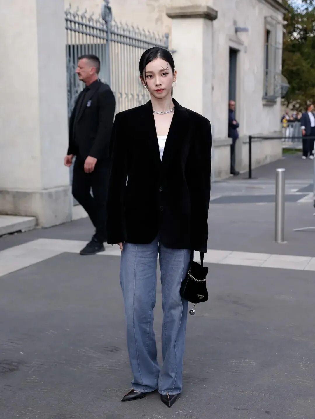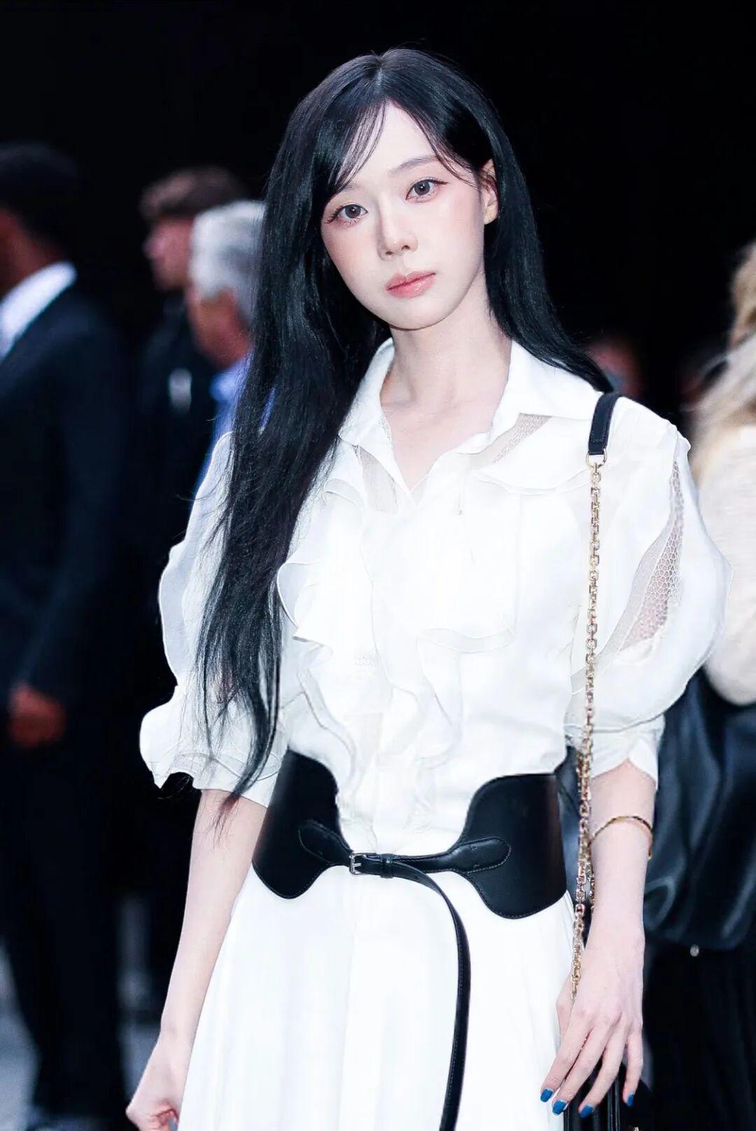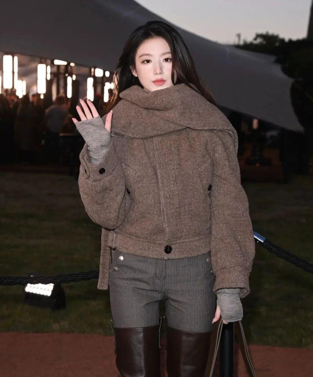 同场竞技的韩娱代表是aespa的Winter。其实她穿得也不错,走富家千金路线,只不过韩国爱豆的妆容离开了舞台, 就有点假面感,越看越觉得她像ai捏出来的。