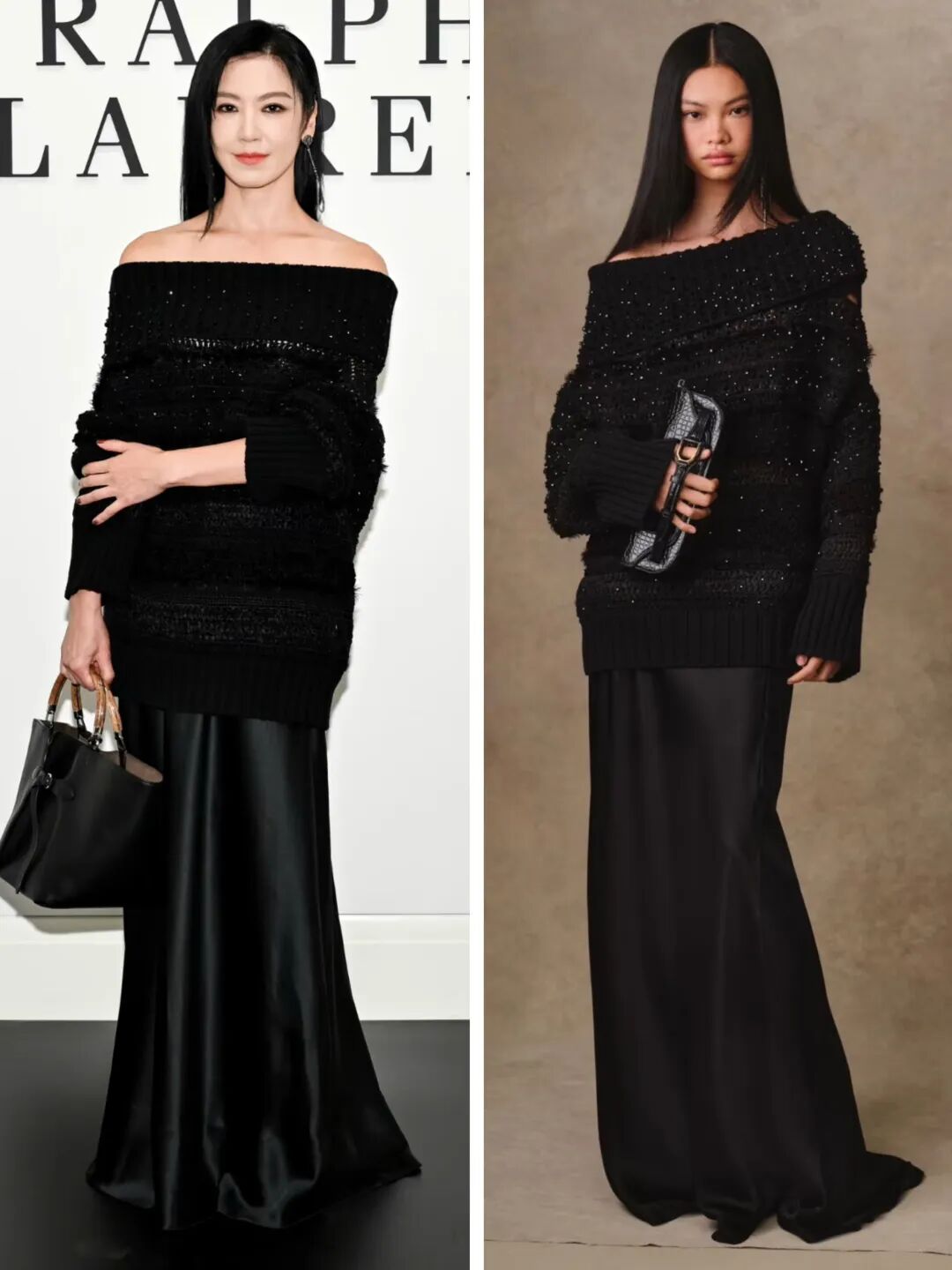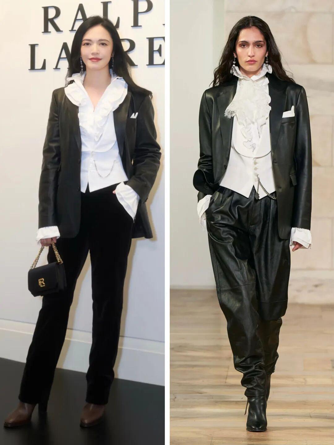 我觉得像她这样不过度医美、带着岁月痕迹的美,比那种塑料感的年轻要高级多了。她那股英气还在,并且优雅雍容,很符合Ralph Lauren的老钱风格。