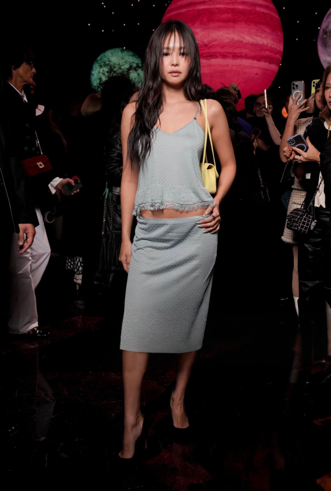 然后就是2026春夏四大时装周的高光时刻了——Blackpink姐妹三连扑。 Jisoo,你既可以说她是大堂经理,也可以说她在吧台实习,总之只想让人对她大声喊一句:可以麻烦加点水吗,美女!